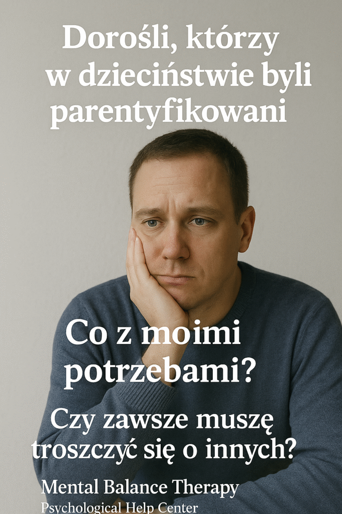 Dorośli, którzy w dzieciństwie byli parentyfikowani, często zmagają się z chronicznym poczuciem winy towarzyszącym próbom zadbania o siebie. Internalizują przekonanie, że ich potrzeby są mniej istotne od potrzeb otoczenia. Żyją w ciągłym napięciu między głęboko zakorzenionym wzorcem bycia potrzebnym a nieświadomą tęsknotą za prawem do otrzymywania troski.